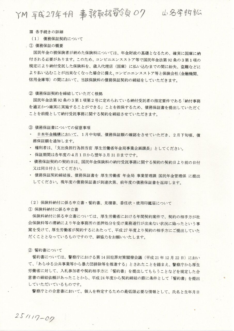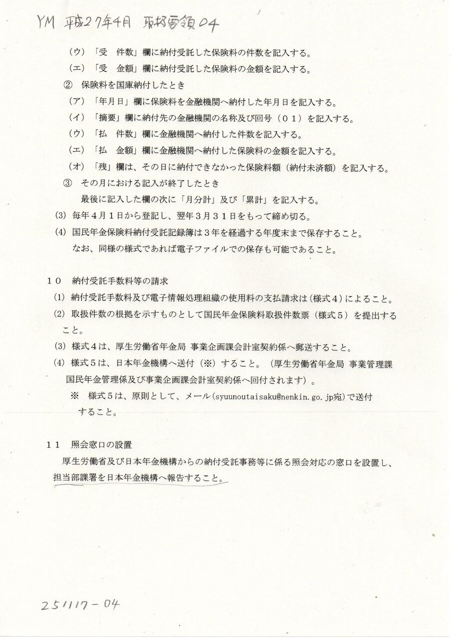 イ< 国民年金保険料の納付受託事務に係る取扱要領 >山名学訴訟
