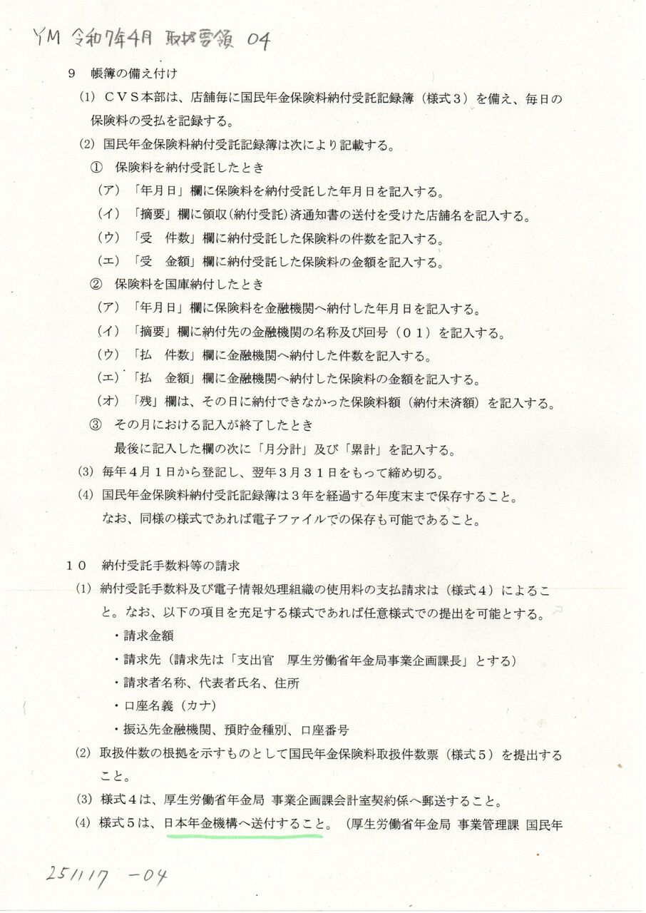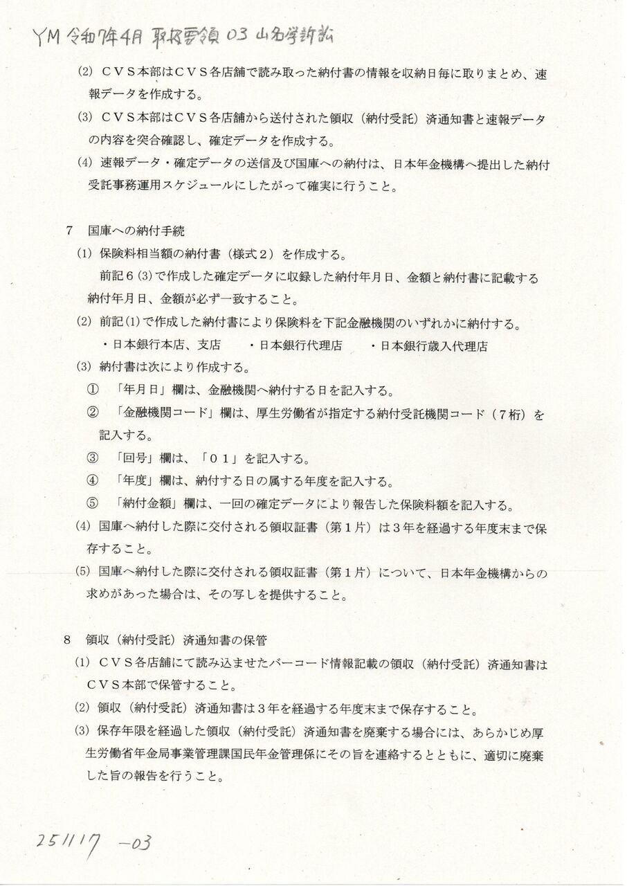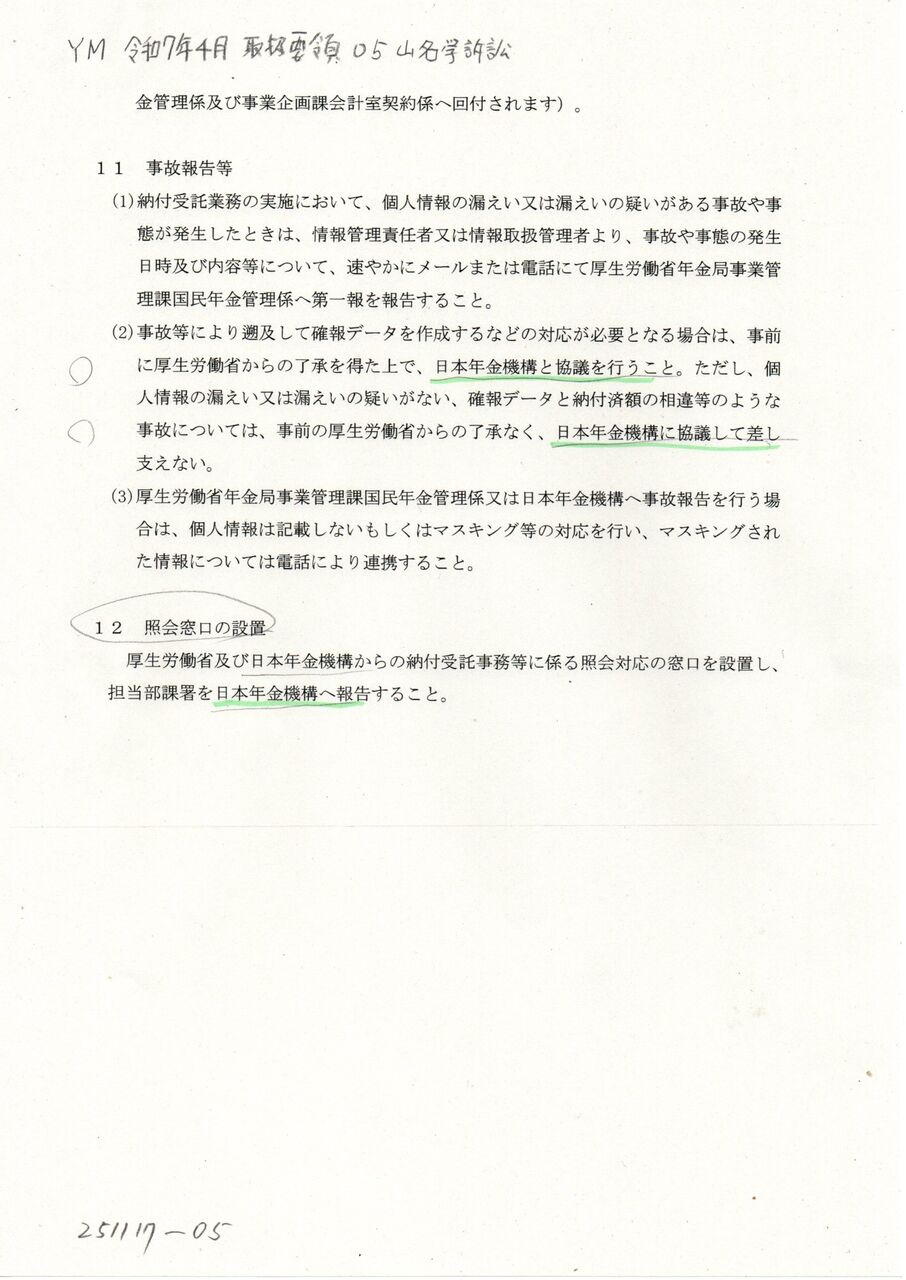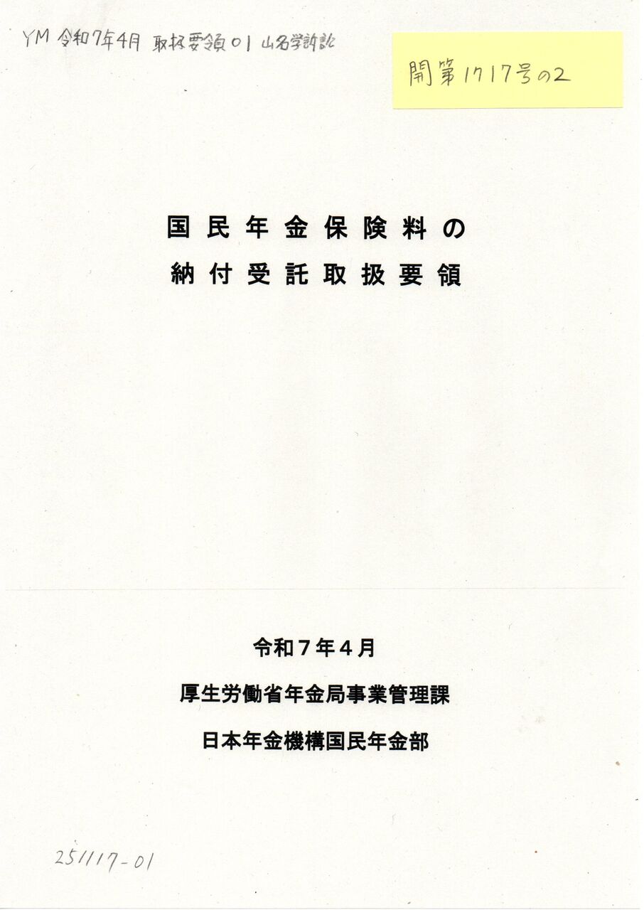 イ< 令和7年4月国民年金保険料の納付受託事務に係る取扱要領 >山名学訴訟