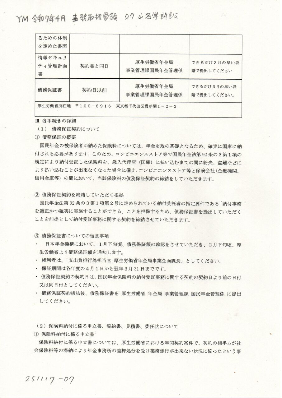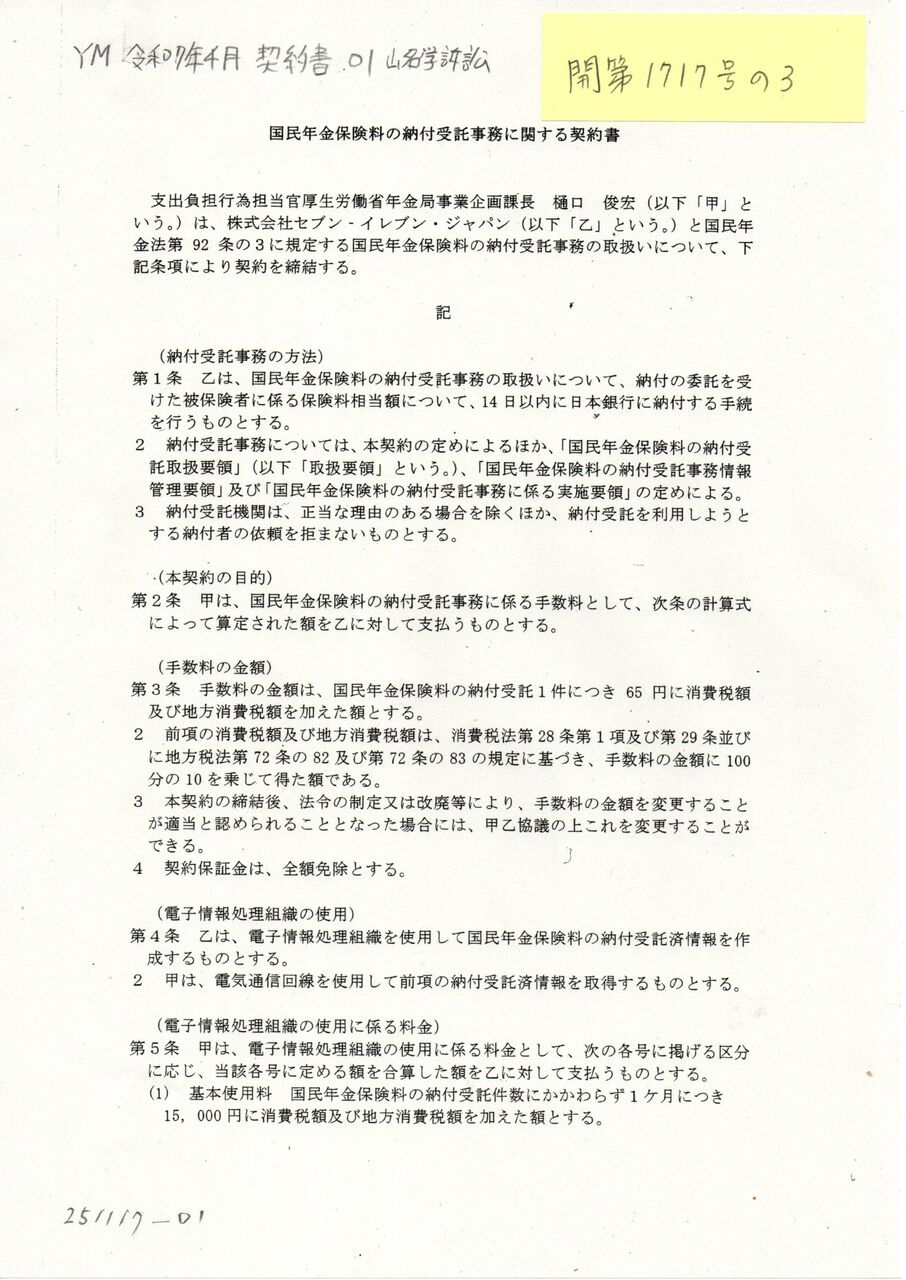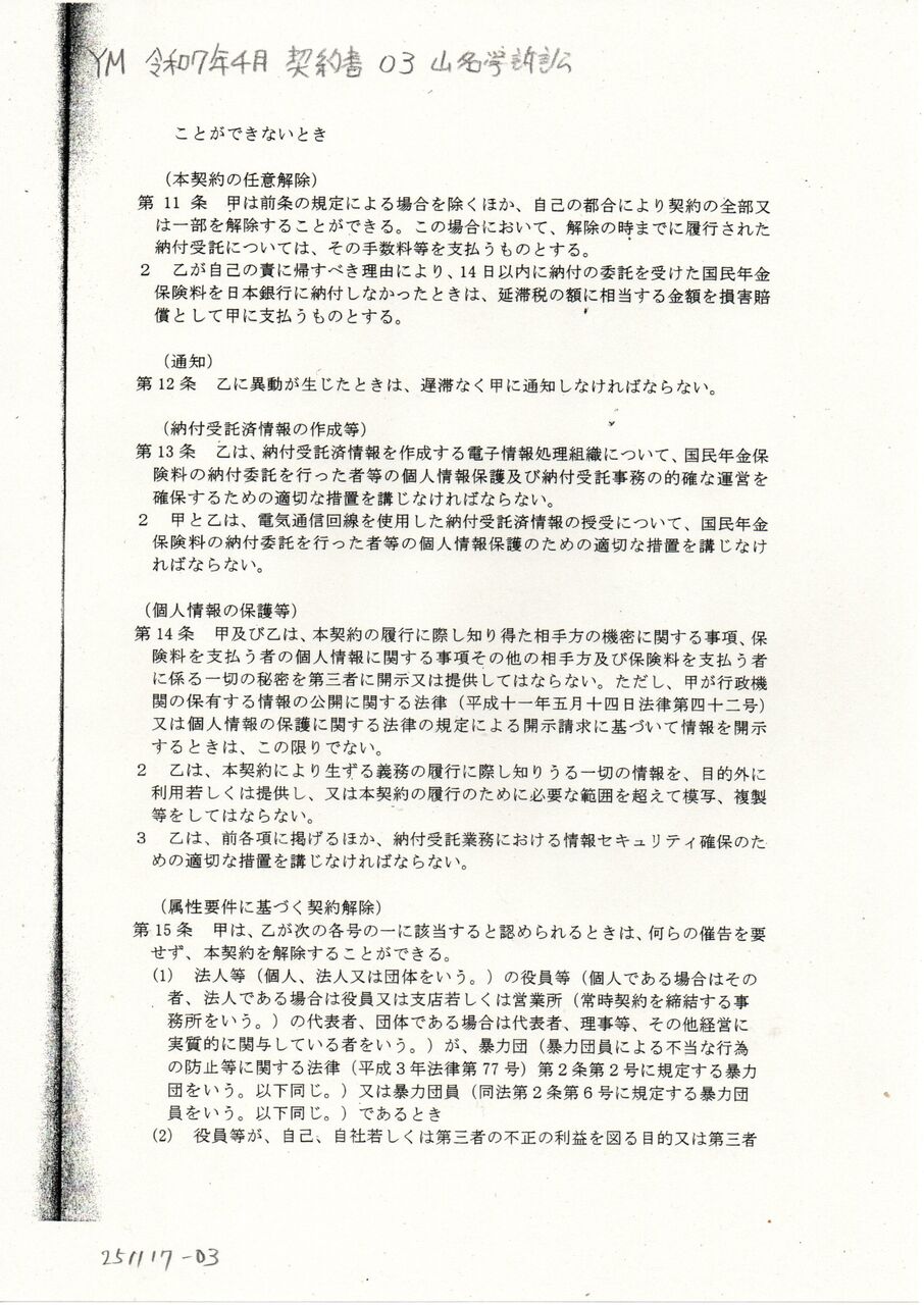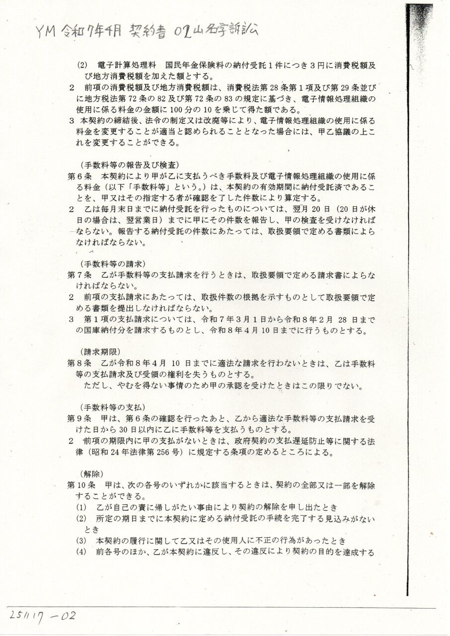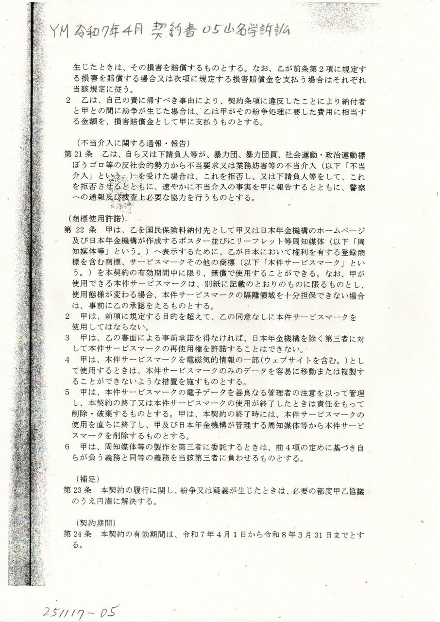 イ< 令和7年4月国民年金保険料の納付受託事務に係る契約書 >山名学訴訟