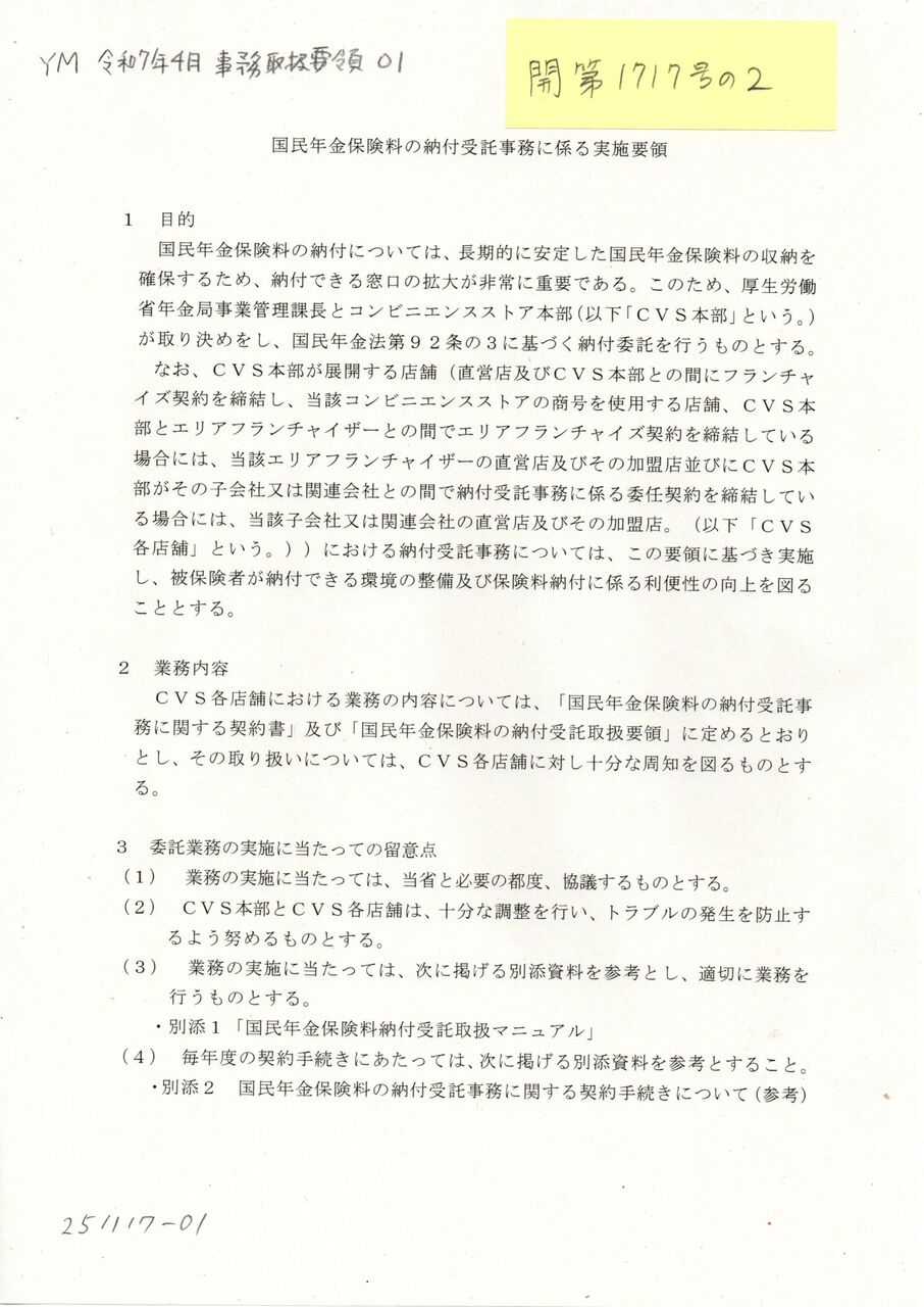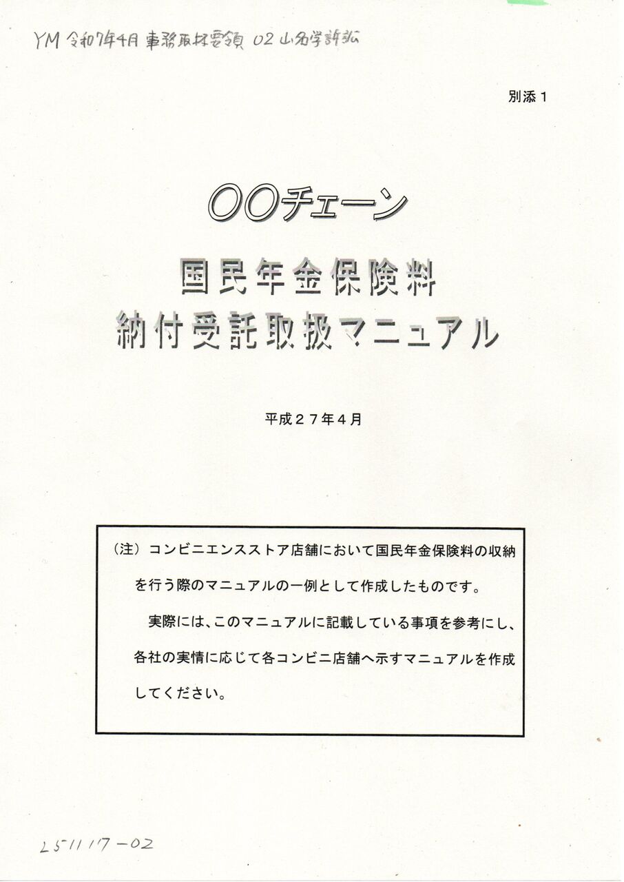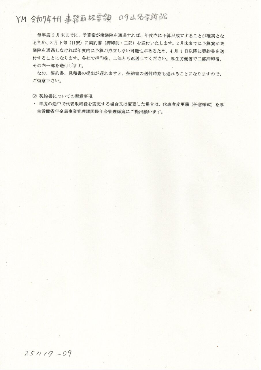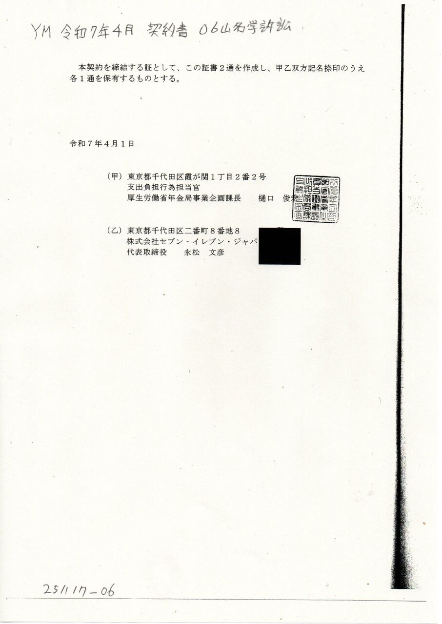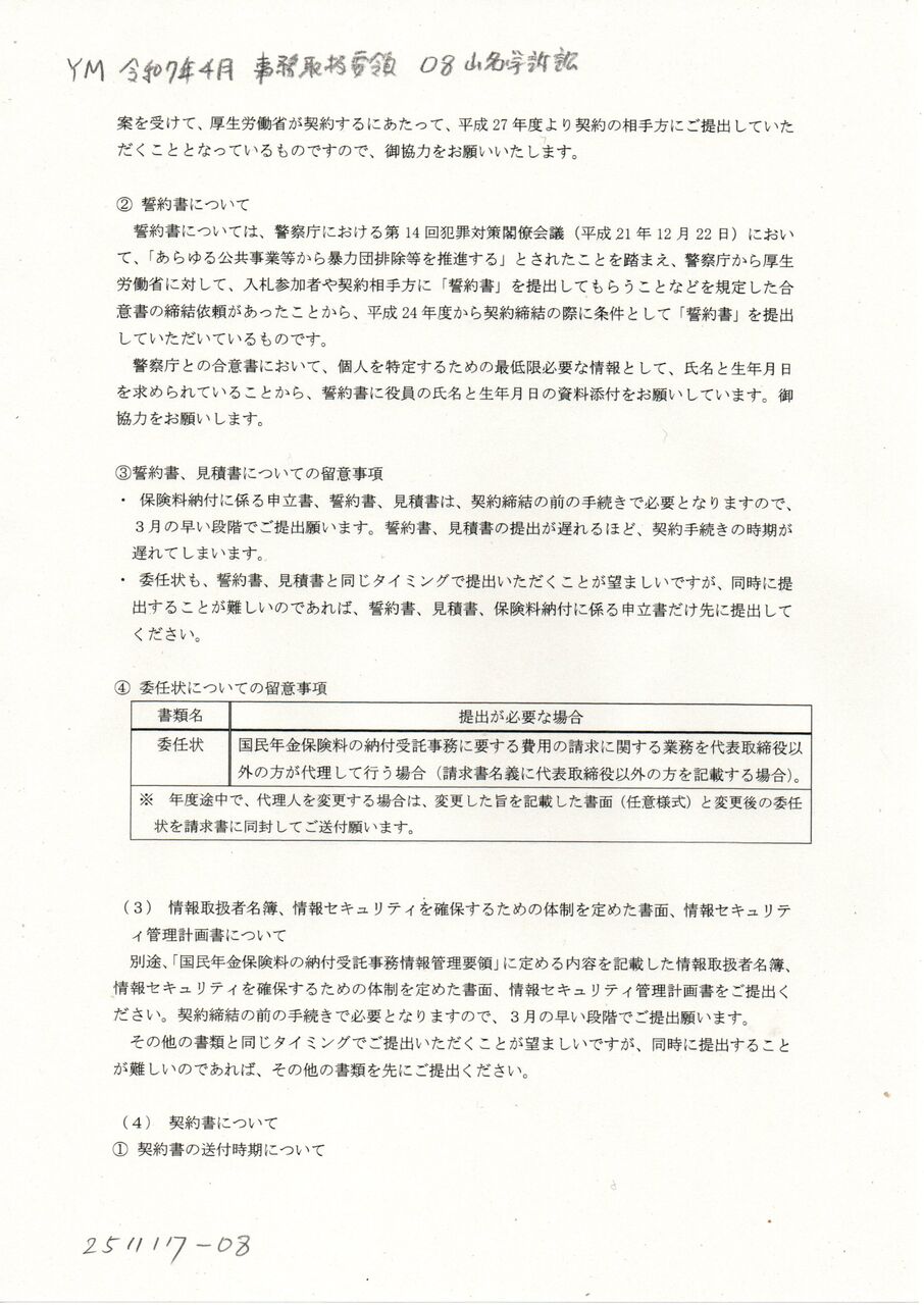 イ< 令和7年4月国民年金保険料の納付受託事務に係る契約書 >山名学訴訟