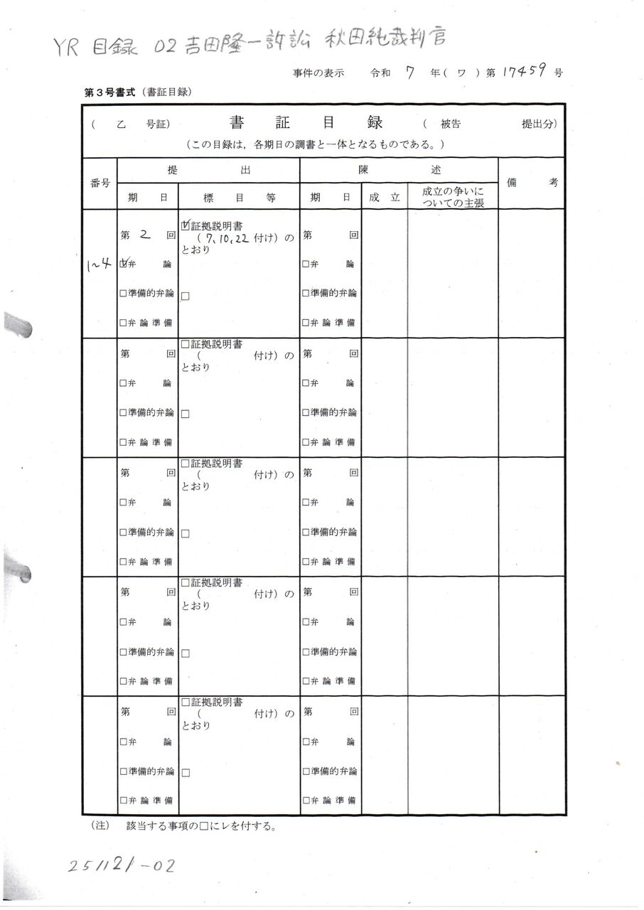 画像版 YR 目録 吉田隆一訴訟 秋田純裁判官