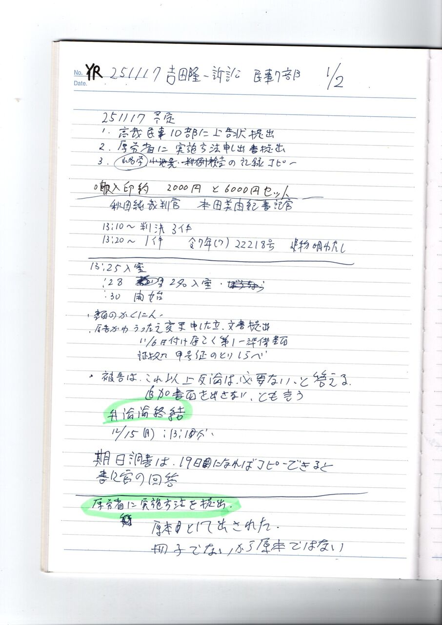 画像版 YR 251117 第1回弁論メモ 吉田隆一訴訟 秋田純裁判官