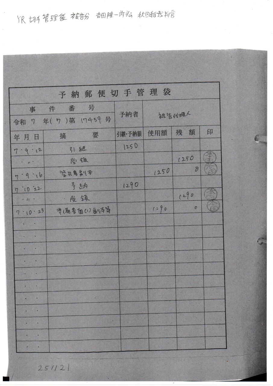 3 YR 切手管理袋 被告分 吉田隆一訴訟 秋田純裁判官