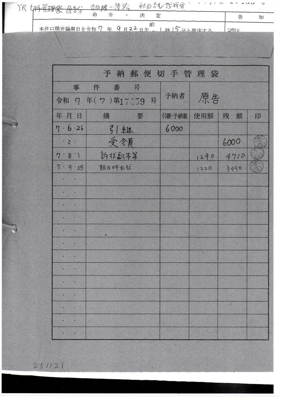 2 YR 切手管理袋 原告分 吉田隆一訴訟 秋田純裁判官