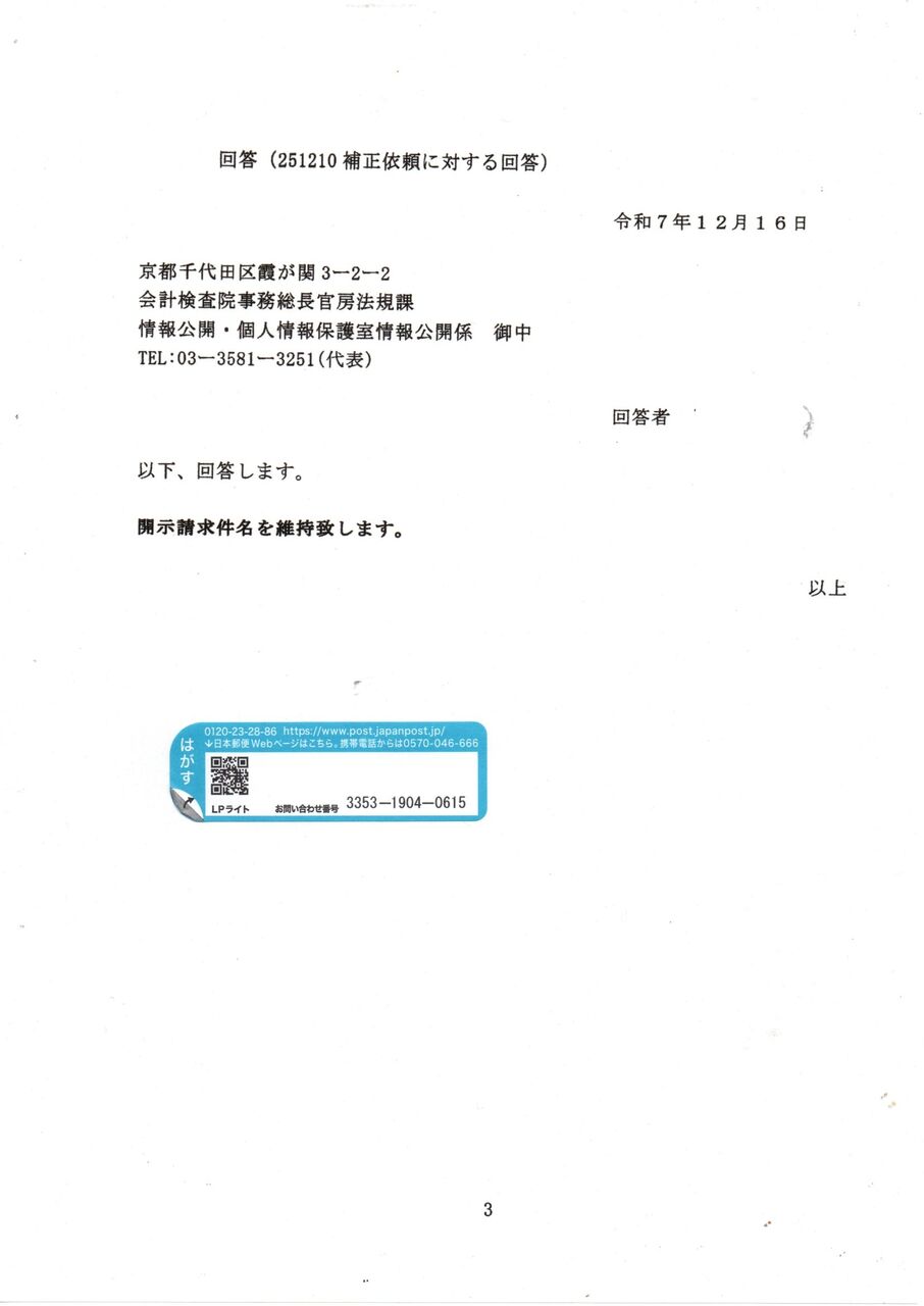 3 YM 251216 補正回答 原田祐平 会計検査院