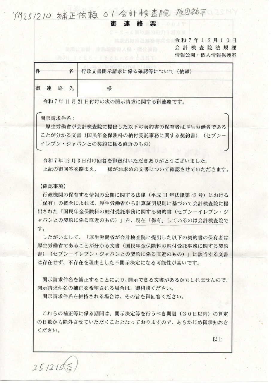 1 YM 251210 補正依頼 01原田祐平 会計検査院