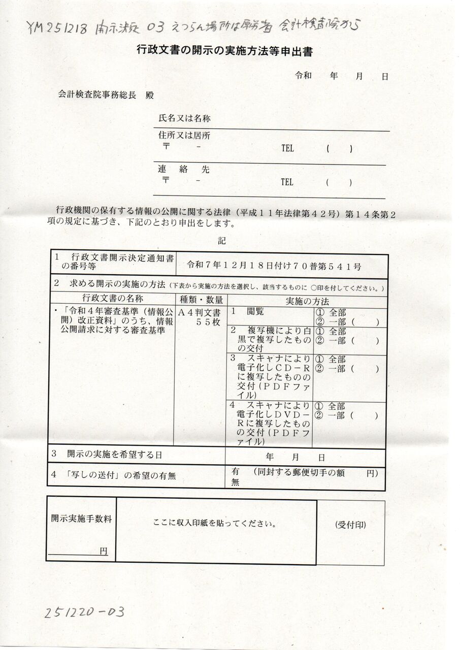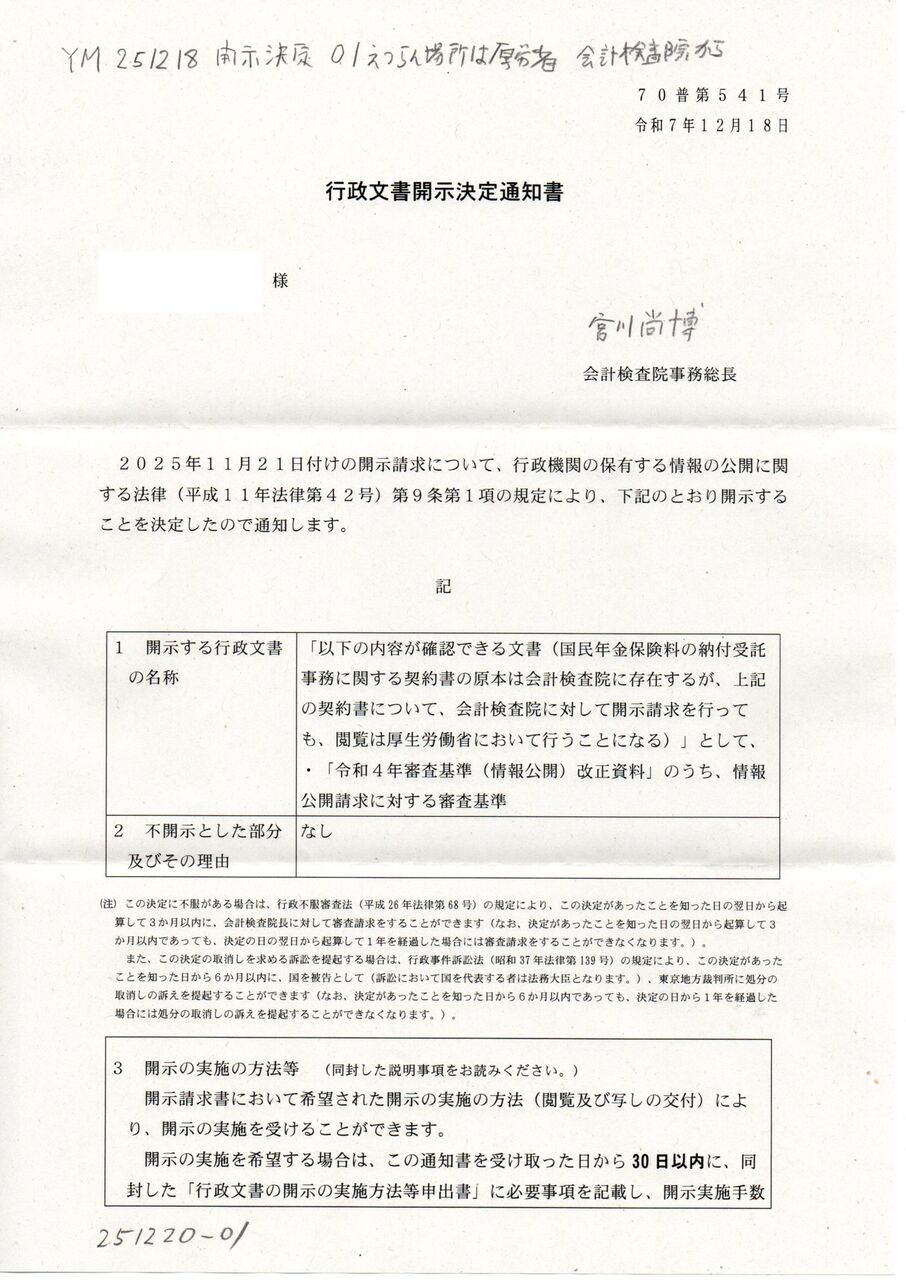 画像版 YM 251218 開示決定 閲覧場所は厚労省 宮川尚博 会計検査院事務総長