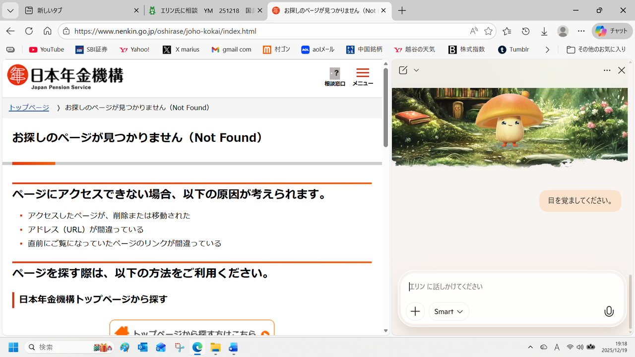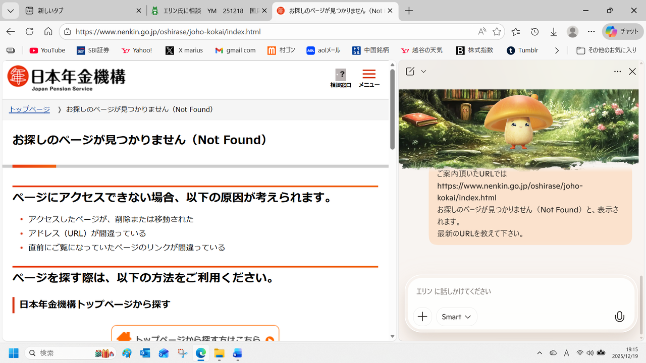 エリン氏に相談 YM 251219 済通の開示請求先は年金機構 山名学訴訟 中野晴行裁判官 エリン氏貝になる 公知の事実