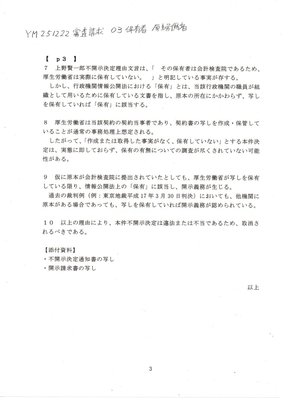 3 YM 251222 審査請求書 03保有者 厚生労働省