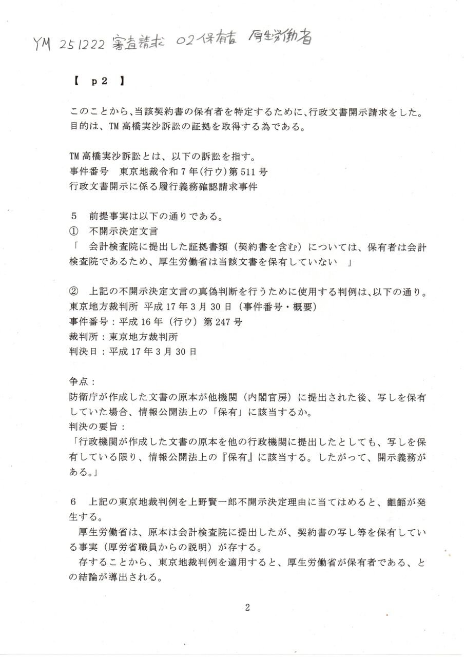 2 YM 251222 審査請求書 02保有者 厚生労働省